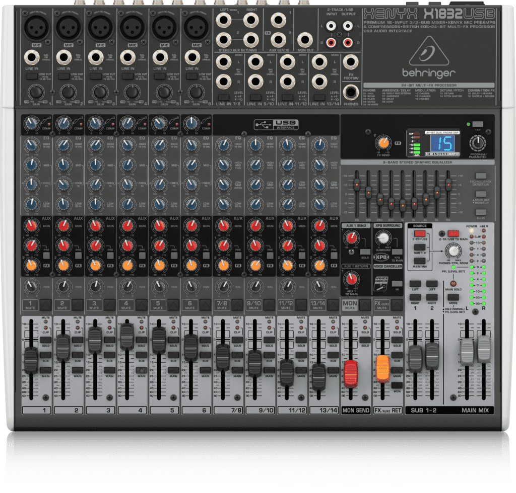 Premium 18-Input 3/2-Bus Mixer with XENYX Mic Preamps & Compressors, British EQs, 24-Bit Multi-FX Processor and USB/Audio Interface